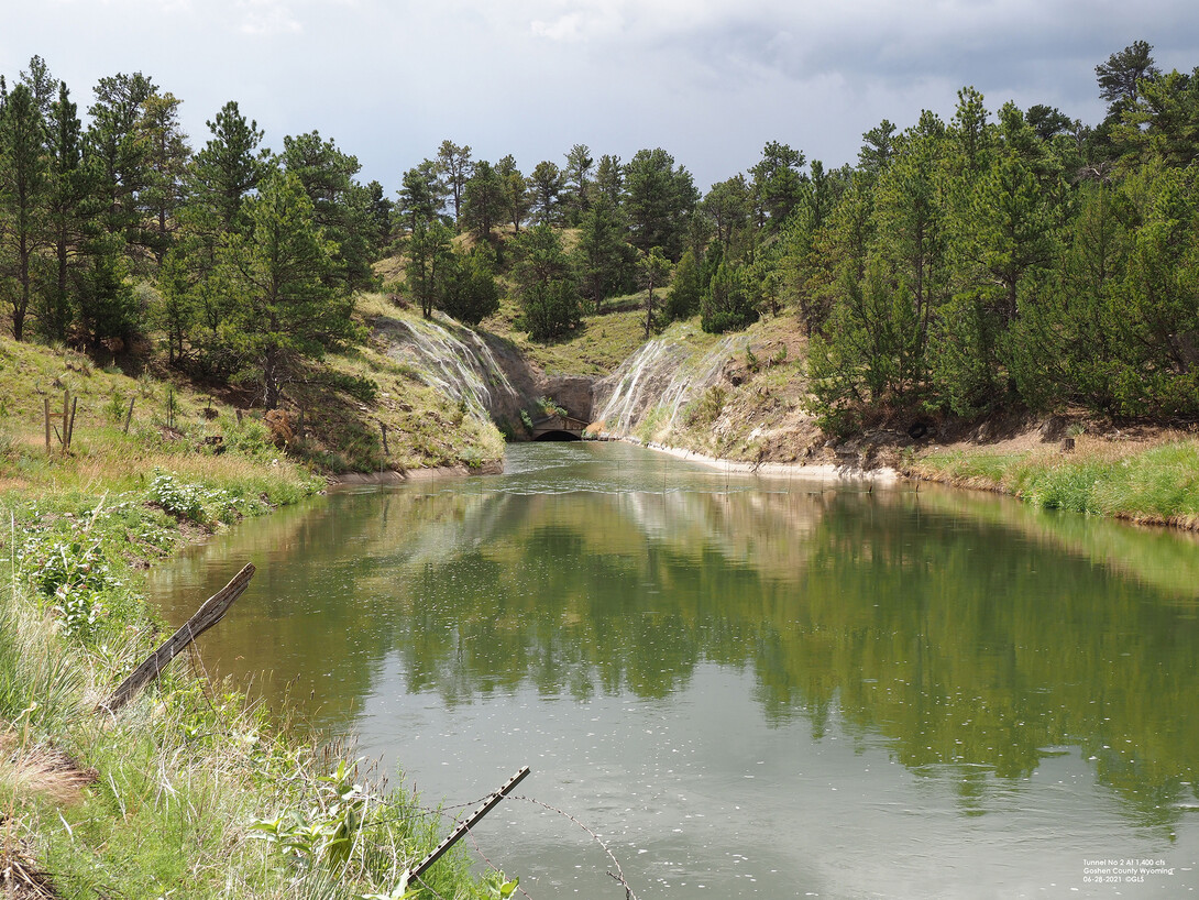 After the collapse of Tunnel No. 2 on the Goshen / Gering-Fort Laramie main canal in 2019, temporary repairs were made to Tunnels No 1 and 2. Steel “ribs” were installed inside the tunnels to give support to the concrete tunnel walls.